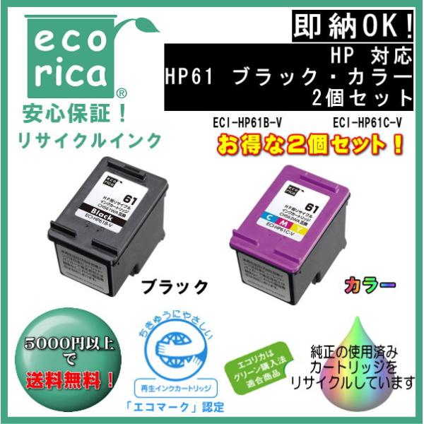 HP61 黒(CH561WA)・カラー(CH562WA) お得な2個セット リサイクル品(エコリカ)ECI-HP61B-V,ECI-HP61C-V【ENVY5530/ENVY4500/ENVY4504】