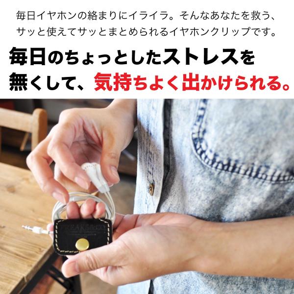 イヤホン イヤホンホルダー コードホルダー まとめる 収納 レザー コードクリップ ケーブルクリップ 本革 牛革 栃木レザー 全5色 日本製 Freaks&co.