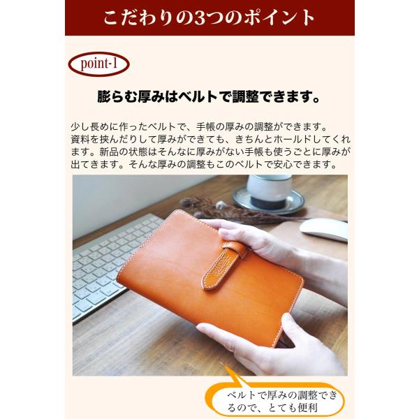 参考写真はB6サイズの厚み13-14mmの手帳をセットしています。これ以上の厚みのもの不可。薄すぎる手帳にも不可ですので、開時のサイズをご参考にご検討ください。
