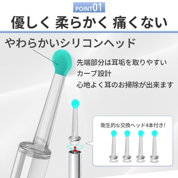 付属品:シリコンヘッド4本、充電ケーブル、耳かきセット、取扱説明書(日本語説明書を追加しました)