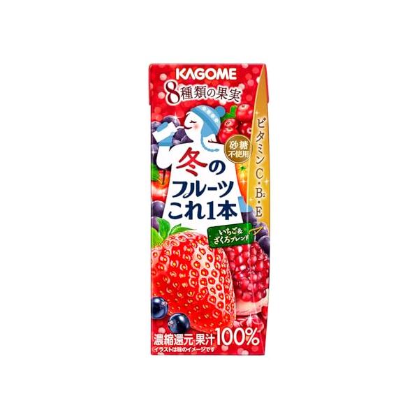 カゴメ 冬のフルーツこれ一本 いちご&ざくろブレンド 200ml紙パック×24本(季節限定品 砂糖不使用 ビタミンC・B2・E 8種類の果実)