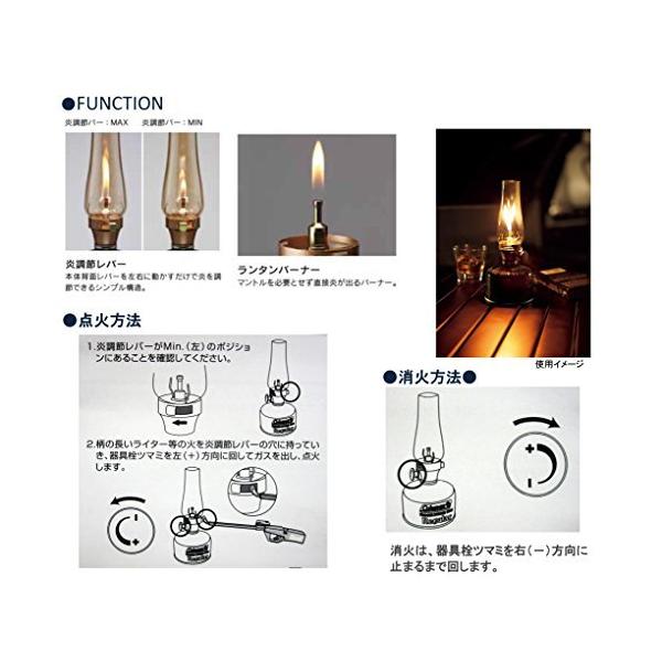 「商品情報」受賞 この商品は2011年グッドデザイン賞※受賞商品です。※グッドデザイン賞は公益財団法人日本デザイン振興会が運営しています。プロデューサー:コールマン ジャパン株式会社ディレクター:コールマン ジャパン株式会社 シニアプロダクトマネージャー 新井 孝俊デザイナー:コールマン ヨーロッパ, 中東, アフリカ(EMEA)デザイナーのコメント:この製品を通して、日頃、火や炎をあまり間近に感じていないことに気づかれると思います。使っていると改めて灯りの存在や大切さを認識でき、また、そのフォルムからは、どことなく懐かしさや心が和む心地よさを感じていただけると思います。従来の燃焼器具のハードなエクイップメントとしてではなく、癒しのアイテムとして使ってもらいたいと願っています。 商品紹介 揺れる炎でやさしく照らす、マントル不要のキャンドル風「主な仕様」
