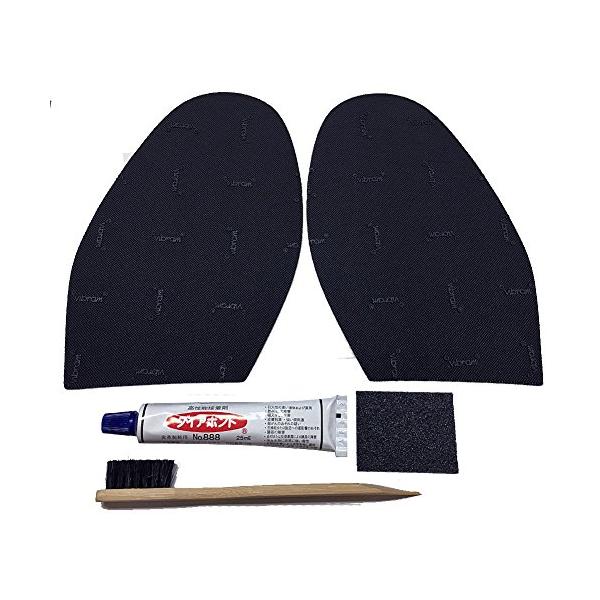 靴修理キット ビブラム vibram 半張り 7673 ボンドセット No.2サイズ 黒 『靴底補修・滑り止めシート』