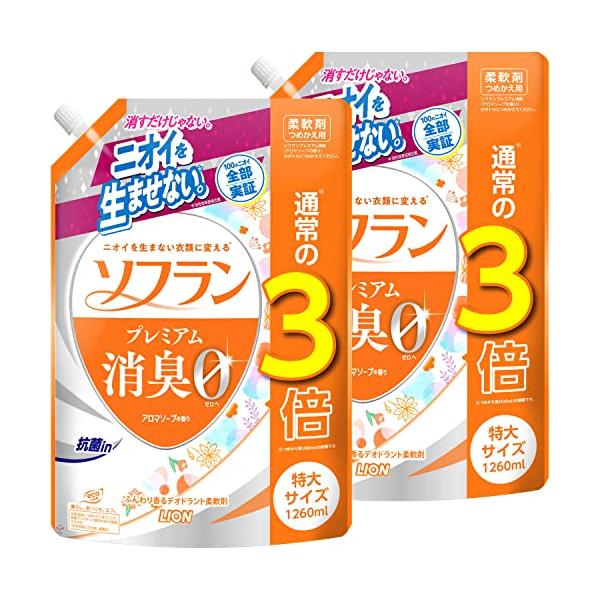 【まとめ買い 大容量】ソフラン プレミアム消臭 アロマソープの香り 柔軟剤 詰め替え 特大1260ml×2個セット