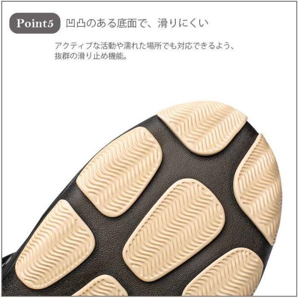 ・滑り止め設計 底部は滑り止めゴムでできています。滑り止めのラインがはっきりしています。グリップ力が強くて、滑りを心配することなく、濡れた道(浴室、ビーチなど)を安全に歩くことができます。また、高品質の防水性能がありますので、靴の中の水分によってゴムが抜ける心配がありません。