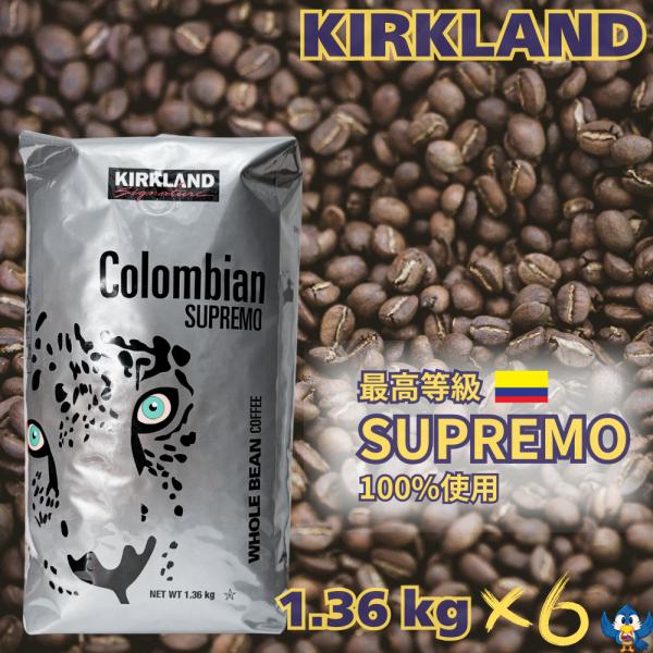 コーヒー豆 カークランド コロンビア スプレモ 1.36kg x 6袋 最高等級 コロンビア豆 100% ホールビーン コストコ