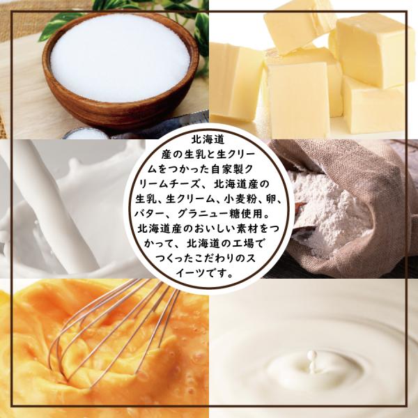 ■原材料名:クリームチーズ(北海道製造)、生クリーム、卵、砂糖、生乳、小麦粉、チェダーチーズ、バター/香料、ゲル化剤(増粘多糖類、加工デンプン)、(一部に卵・乳成分・小麦・ゼラチン・大豆を含む)
