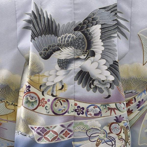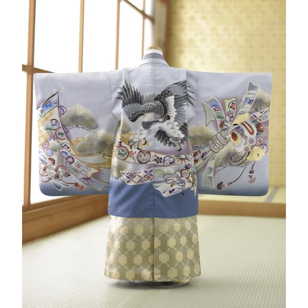 七五三 5歳 男の子 着物 レンタル シルバーグレーぼかし鷹にのし《身長》115cm前後★簡単な着付けマニュアル付き! 子供 着物 男子〔羽織 袴〕セット 753