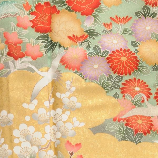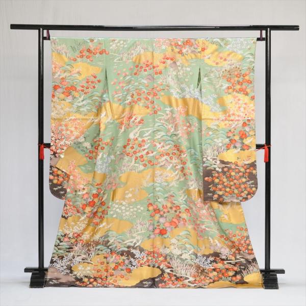 留袖とモーニング同時注文で10%OFF 留袖 レンタル 結婚式 夏用 単衣 こがね雪輪四季の花 身長 150cm〜161cm位 黒留袖 レンタル 夏 母親 高級 正絹