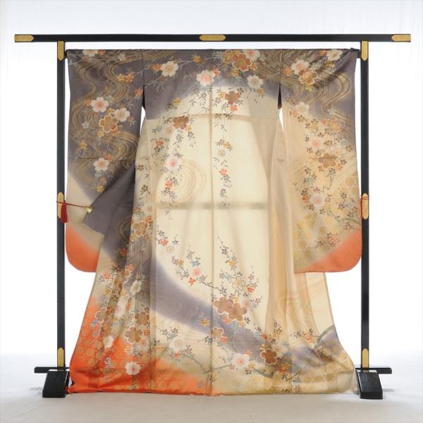 留袖とモーニング同時注文で10%OFF 留袖 レンタル 結婚式 夏用 単衣 紫 流水花ゆきわ 身長 150cm〜161cm位 黒留袖 レンタル 夏 着物レンタル 母親 高級 正絹