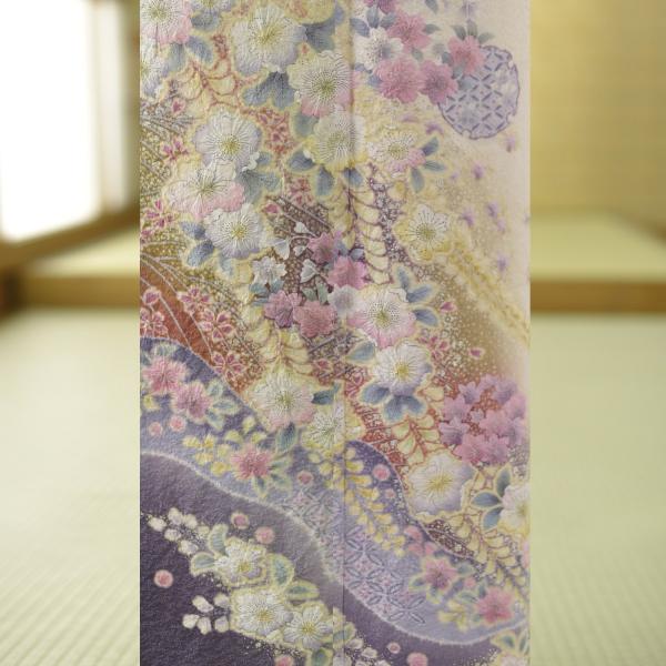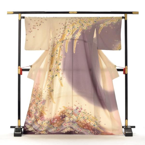 留袖とモーニング同時注文で10%OFF 留袖 レンタル 結婚式 夏用 単衣 紫 流水花ゆきわ 身長 150cm〜161cm位 黒留袖 レンタル 夏 着物レンタル 母親 高級 正絹