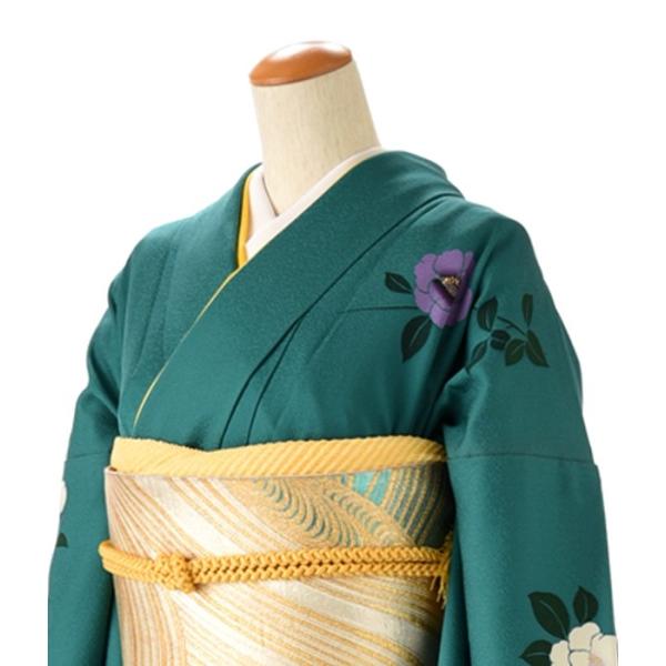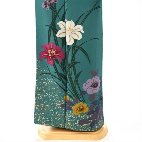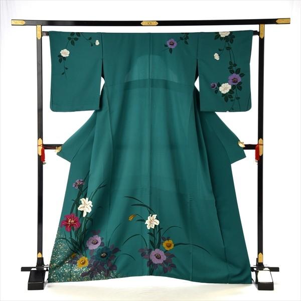 夏用単衣訪問着 グリーン立ゆり(裾) 身長155cm〜165cm位 訪問着 レンタル 結婚式 夏用 単衣 着物レンタル お宮参り 母親 ママ 母 上品 5月 6月 7月 8月 9月 夏