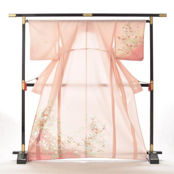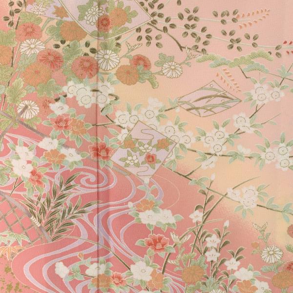 夏用単衣訪問着 レンタル 訪問着 ピンクぼかしに花色紙 身長 154cm〜166cm位 単衣 夏 着物レンタル 結婚式 お茶会 七五三 お宮参り 女性 母親 夏用訪問着