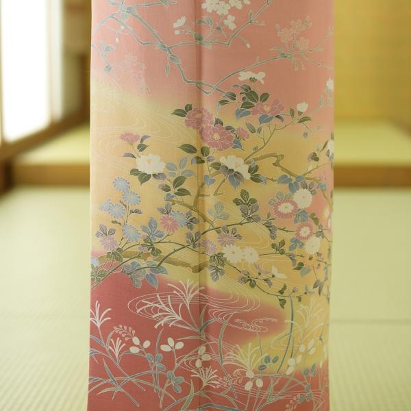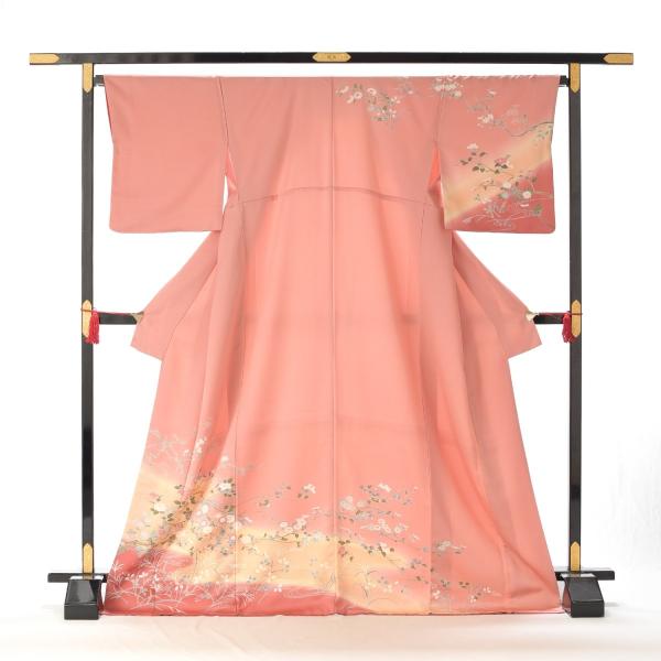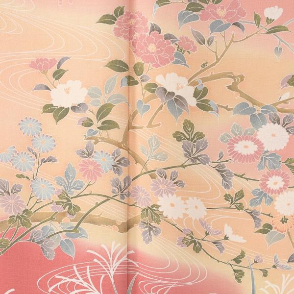 訪問着 レンタル 卒業式 母 着物 サモンピンク水面に四季の花 身長 155cm〜165cm位 着物レンタル 結婚式 入学式 卒業式 七五三 お宮参り 母親 ママ 母