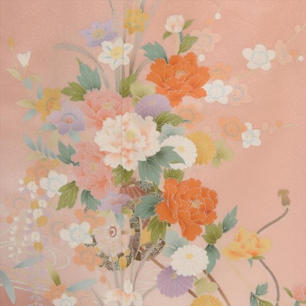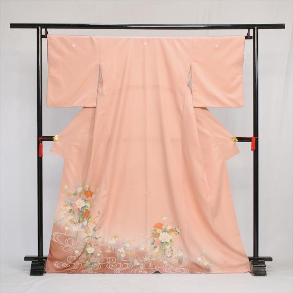 色留袖 レンタル サモンピンク水に花車 身長 153cm〜166cm位 結婚式 着物レンタル 親族 姉 妹 列席者 貸衣装 礼装 女性 着物セット 留袖 色留め袖レンタル