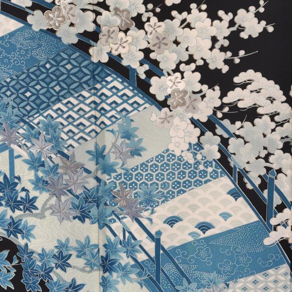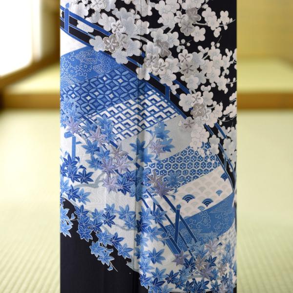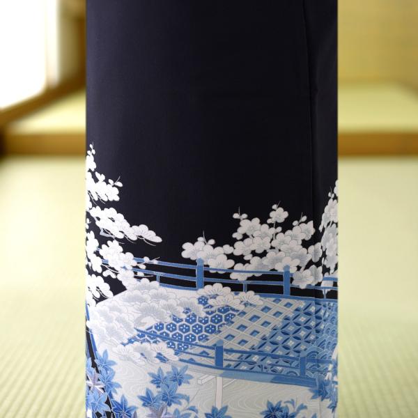 留袖とモーニング同時注文で10%OFF 留袖 レンタル 単衣 夏用 ブルー二条の梅《身長》147cm〜159cm位 黒留袖 レンタル 夏 着物レンタル 結婚式 母親 貸衣装