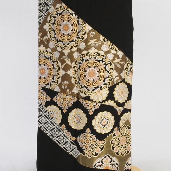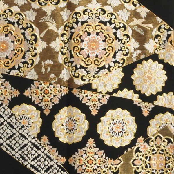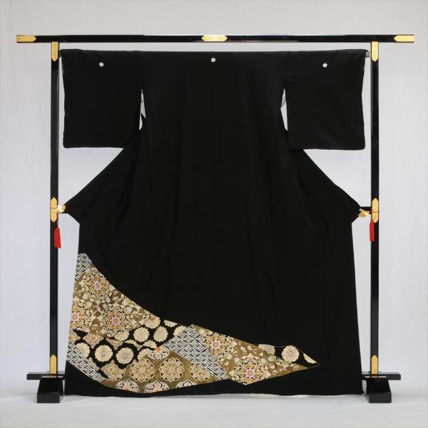 留袖とモーニング同時注文で10%OFF 留袖 レンタル 縫取り吉祥花鏡《身長》155cm〜168cm位 高級 正絹 着物レンタル 結婚式 母親 黒留袖レンタル 留め袖