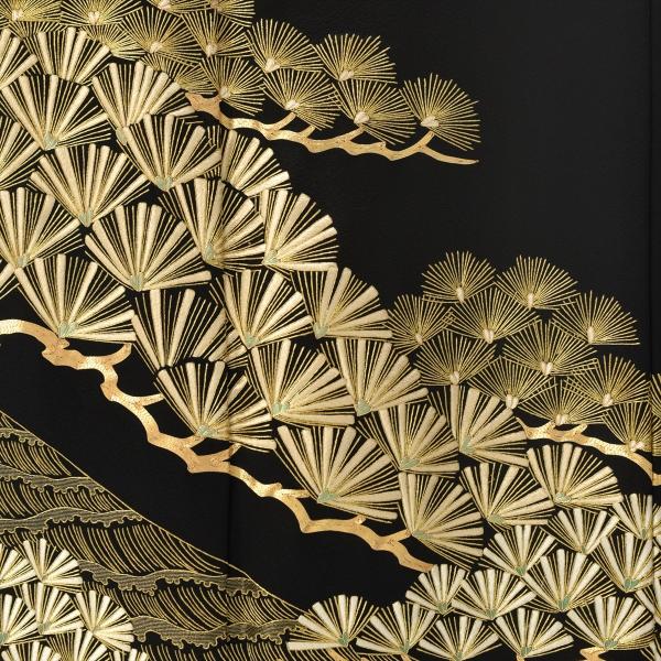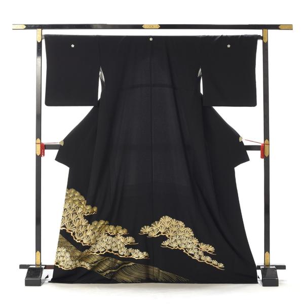 留袖とモーニング同時注文で10%OFF レンタル 留袖 手刺繍唐松文《身長》158cm〜170cm位 着物レンタル 結婚式 母親 高級 正絹 黒留袖 貸衣装 留め袖