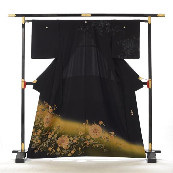 留袖とモーニング同時注文で10%OFF 留袖 レンタル 結婚式 単衣 夏用 ラメ入り唐草花鏡 身長 147cm〜159cm位 黒留袖 レンタル 夏 着物レンタル 母親 高級 正絹