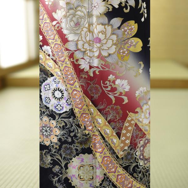 留袖とモーニング同時注文で10%OFF 留袖 レンタル 結婚式 牡丹のし唐花文様 着物レンタル 母親 姉 妹 親族 礼装 高級 正絹 黒留袖レンタル 貸衣装 留め袖