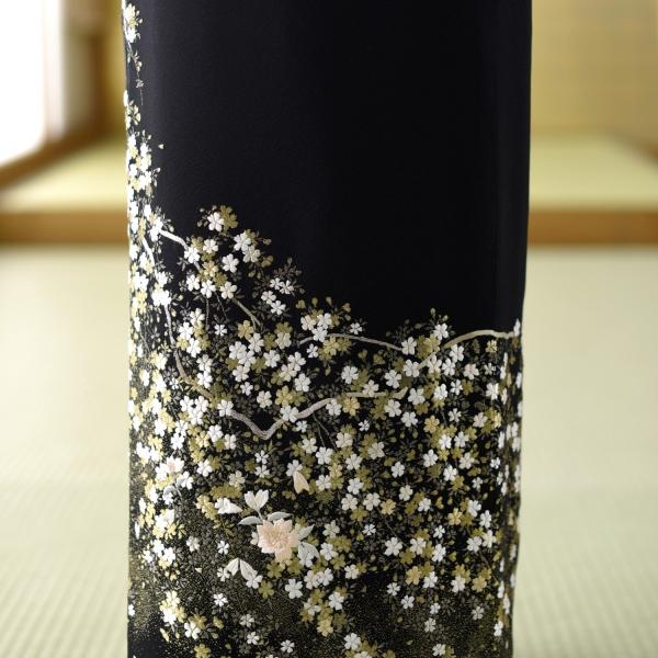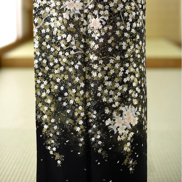 留袖とモーニング同時注文で10%OFF 留袖 レンタル 高級正絹 雅びしだれ桜《身長》153cm〜168cm位 着物レンタル 結婚式 母親 黒留袖レンタル 留め袖 貸衣装