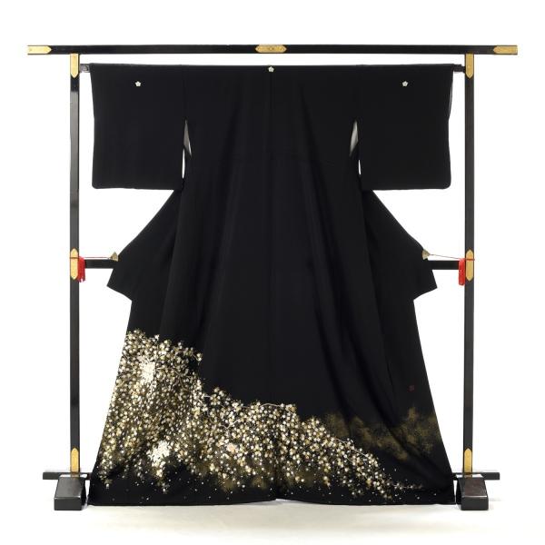 留袖とモーニング同時注文で10%OFF 留袖 レンタル 結婚式 夏用 単衣 こがね雪輪四季の花 身長 150cm〜161cm位 黒留袖 レンタル 夏 母親 高級 正絹
