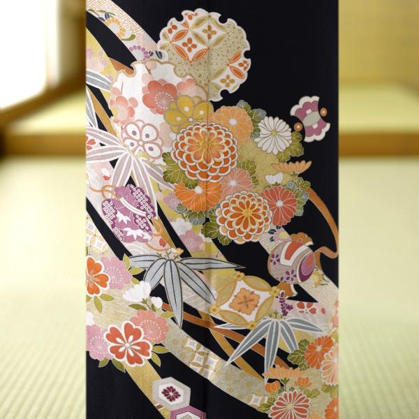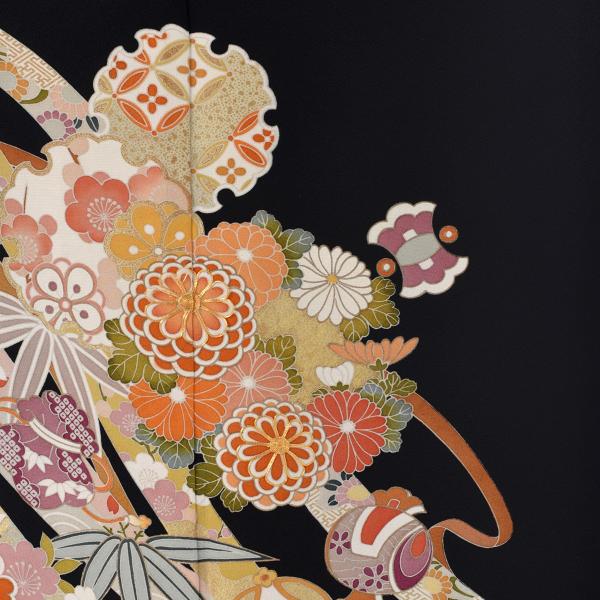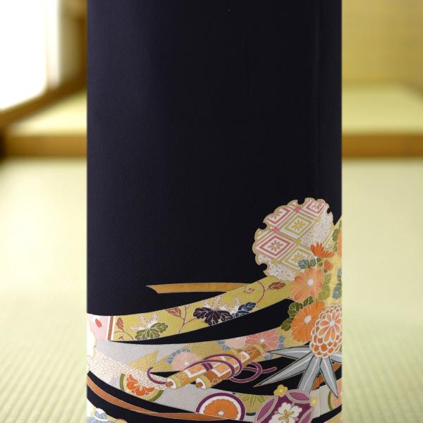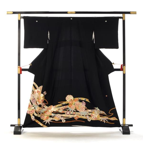 留袖とモーニング同時注文で10%OFF 留袖 レンタル 結婚式 雪輪熨斗に宝づくし 身長 147cm〜159cm位 着物レンタル 母親 高級 正絹 黒留袖レンタル