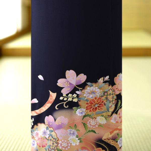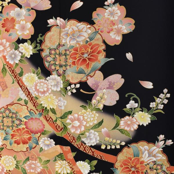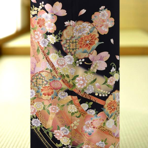 留袖とモーニング同時注文で10%OFF 留袖 レンタル 結婚式 こがね雪輪四季の花 身長 155cm〜162cm位 高級 正絹 着物レンタル 母親 貸衣装 黒留袖レンタル 留め袖