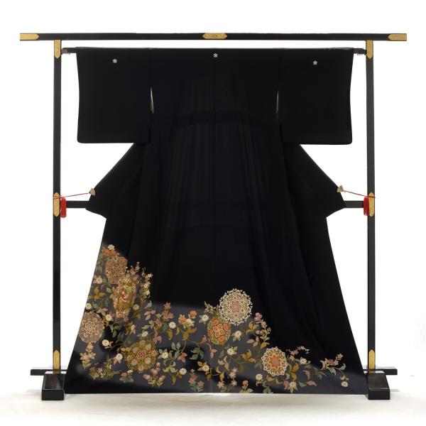 留袖とモーニング同時注文で10%OFF 留袖 レンタル 結婚式 天繍 唐草華文 身長 146cm〜158cm位 黒留袖 正絹 着物レンタル 母親 親族 貸衣装 黒留袖レンタル