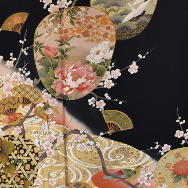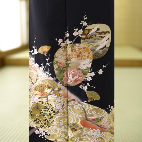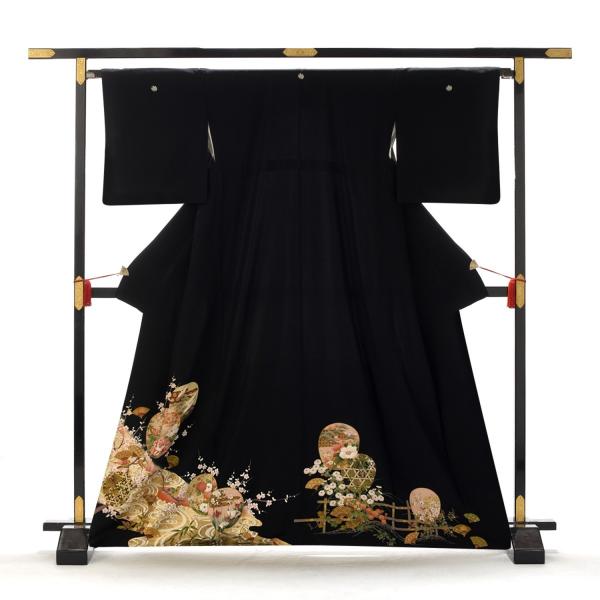 留袖とモーニング同時注文で10%OFF レンタル 留袖 水に円窓《身長》147cm〜159cm位 着物レンタル 結婚式 母親 高級 正絹 黒留袖レンタル 留袖レンタル