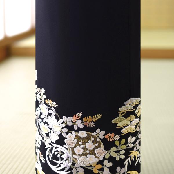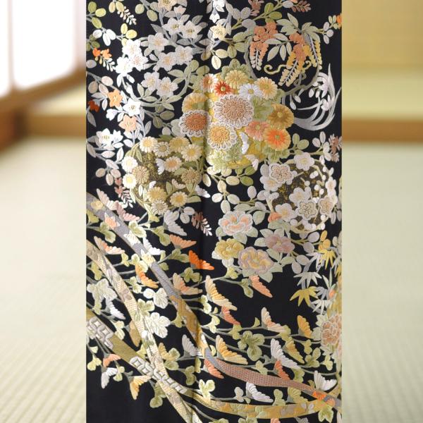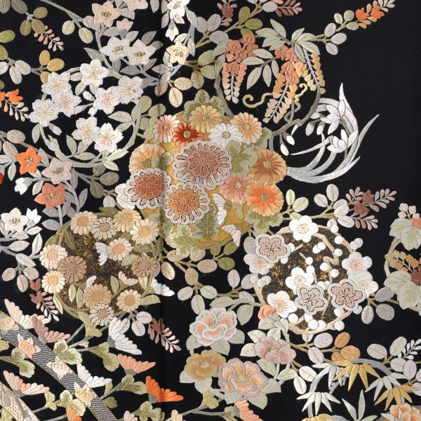 留袖とモーニング同時注文で10%OFF 留袖 レンタル 手刺繍花くらべ《身長》152cm〜167cm位 高級 正絹 着物レンタル 結婚式 母親 親族 列席者 礼装 黒留袖レンタル