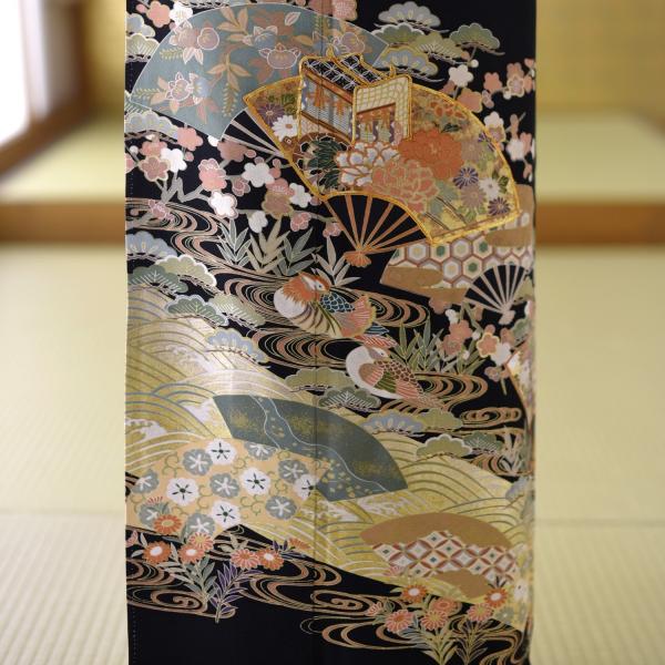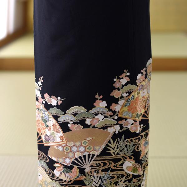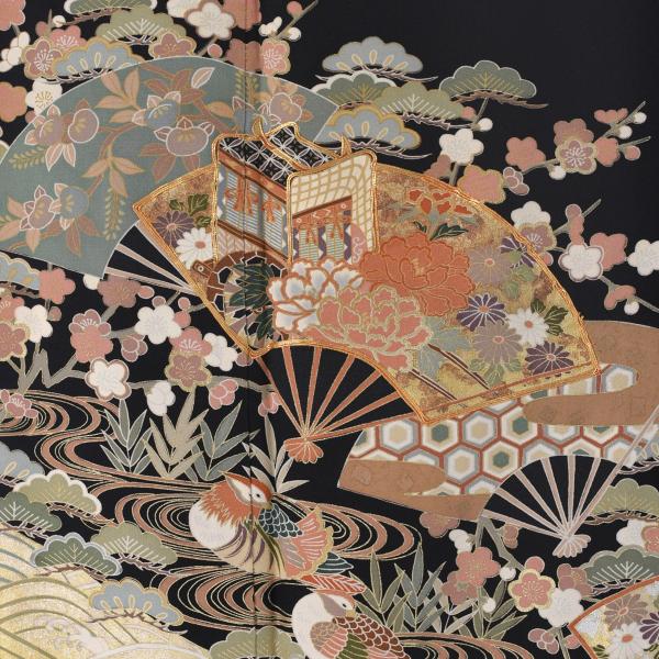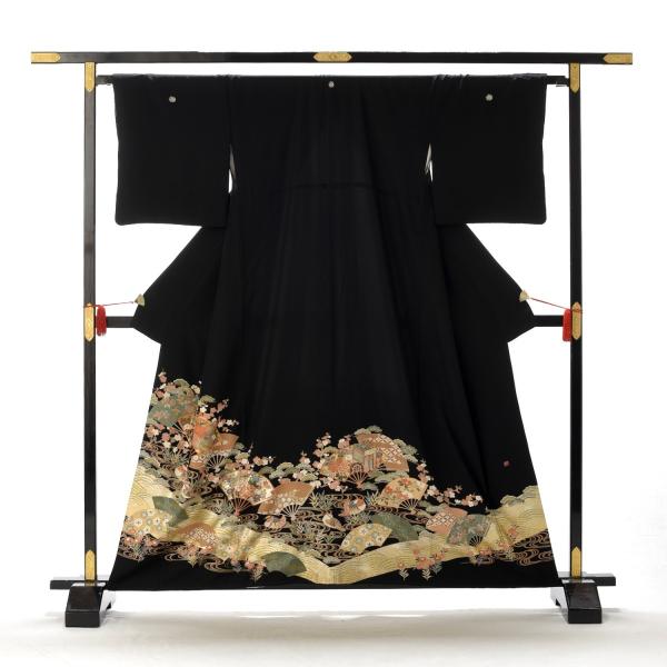 留袖とモーニング同時注文で10%OFF 留袖 レンタル 観世扇面《身長》146cm〜158cm位 黒留袖 正絹 着物レンタル 結婚式 母親 親族 列席 貸衣装 黒留袖レンタル