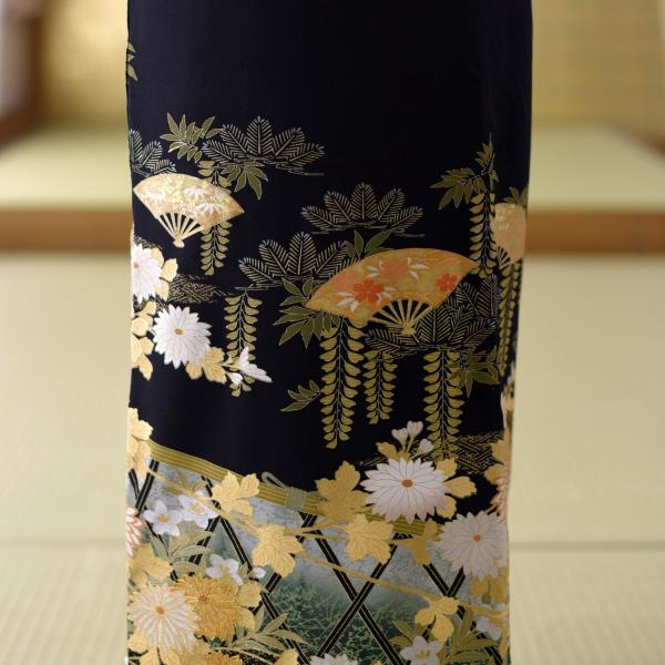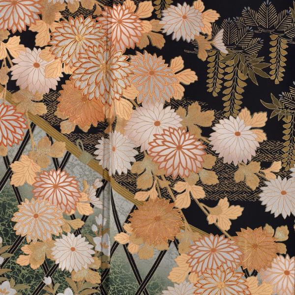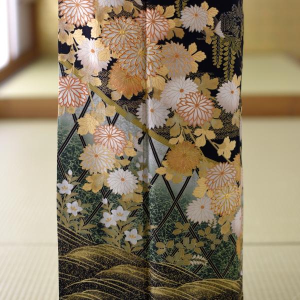 留袖とモーニング同時注文で10%OFF レンタル 留袖 竹垣に菊《身長》149cm〜161cm位 高級 正絹 着物レンタル 結婚式 母親 貸衣装 黒留袖レンタル 留め袖