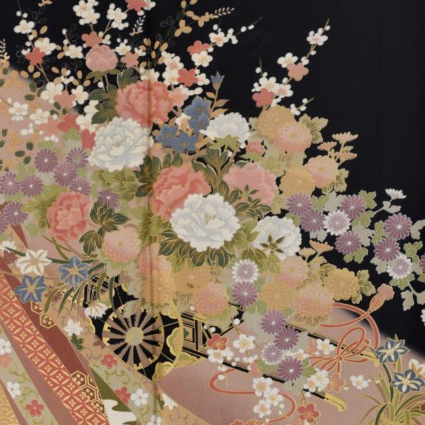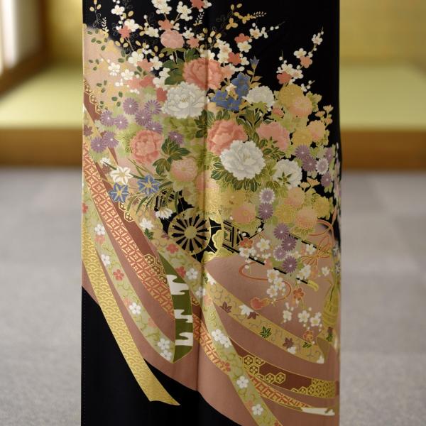 留袖とモーニング同時注文で10%OFF 留袖 レンタル 結婚式 あづまのしめ花車 身長 148cm〜160cm位 高級 正絹 着物レンタル 母親 黒留袖レンタル 留め袖 貸衣装