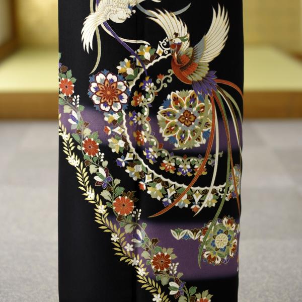 留袖とモーニング同時注文で10%OFF 留袖 レンタル 結婚式 黒留袖 バラ吉祥文《身長》154cm〜169cm位 高級 正絹 着物レンタル 母親 黒留袖レンタル