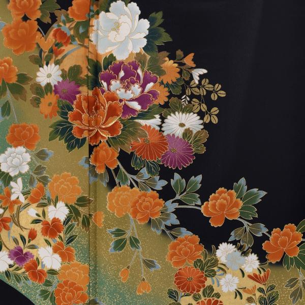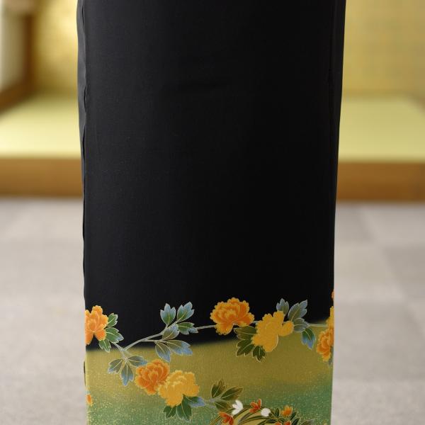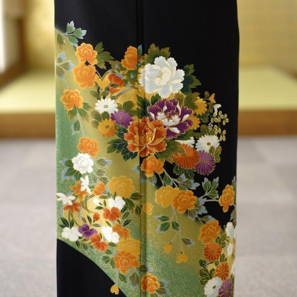 留袖とモーニング同時注文で10%OFF 留袖 レンタル 結婚式 黒留袖 バラ吉祥文《身長》154cm〜169cm位 高級 正絹 着物レンタル 母親 黒留袖レンタル