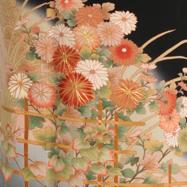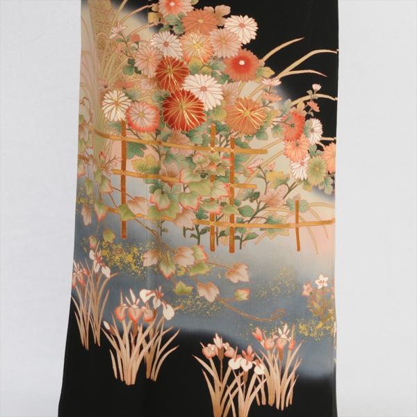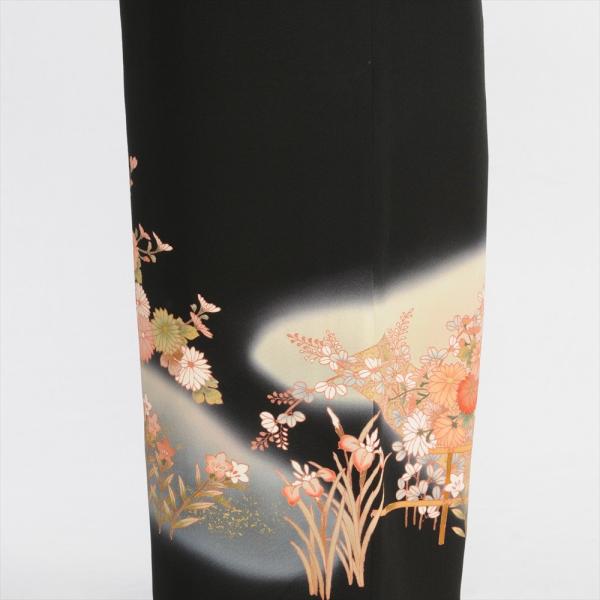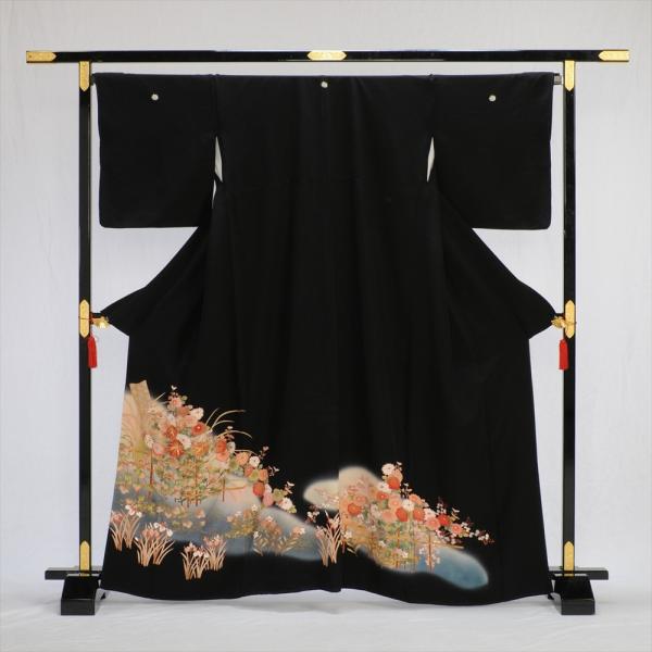留袖とモーニング同時注文で10%OFF 留袖 レンタル 結婚式 夏用 単衣 こがね雪輪四季の花 身長 150cm〜161cm位 黒留袖 レンタル 夏 母親 高級 正絹