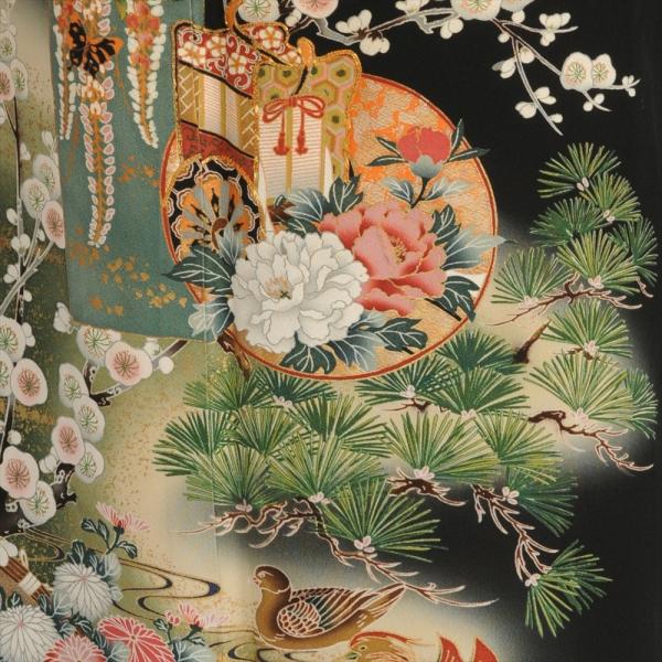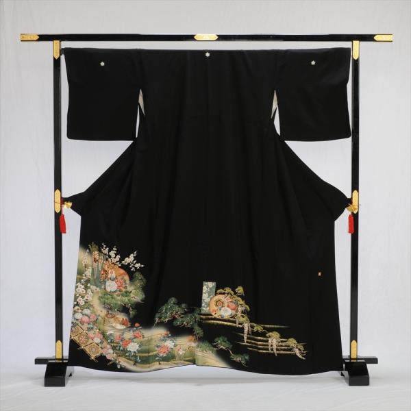 留袖とモーニング同時注文で10%OFF 留袖 レンタル 広巾 大きいサイズ身長155cm〜165cm位 11〜15号位まで 結婚式 母親 親族 正絹 黒留袖レンタル