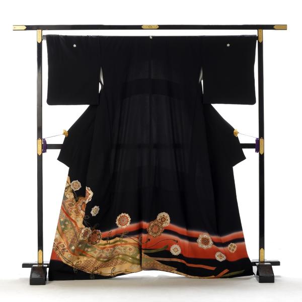留袖とモーニング同時注文で10%OFF 大きいサイズ 留袖 レンタル 広巾 身長153cm〜165cm位13号〜17号位まで 結婚式 母親 高級 正絹 黒留袖レンタル