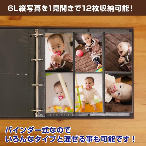 ●ポリプロピレン製L判タテ6面ポケット3層黒エンボス台紙 10枚