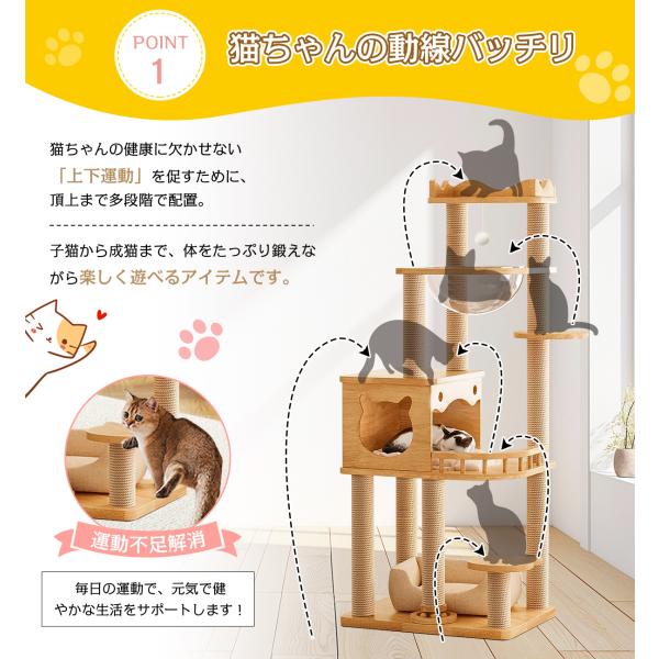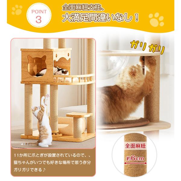 キャットタワー 猫タワー 145cm 木製 スリム 爪とぎ クリアボウル 木登り 安定 おしゃれ 据え置き 大型猫 中型 おしゃれ 省スベース 宇宙船 爪とぎ 多頭飼い