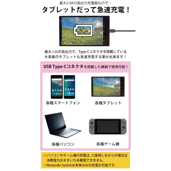 type-Cが搭載されたスマートフォンやタブレット、パソコン、ゲーム機を急速に充電!!