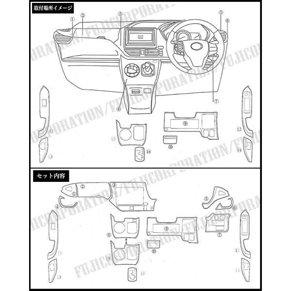 ノア ヴォクシー80 系 3D インテリア パネル セット ピアノブラック 16P