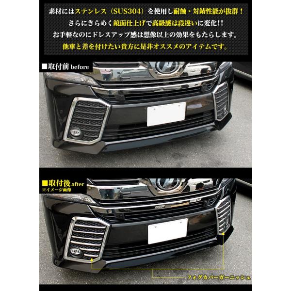 【検索ワード】 ハイブリッド メッキカバー フォグカバー ガーニッシュ カスタム フォグライト バンパー フロント DIY カバー ベゼル クローム メッキ 外装 ハイブリット フォグランプ トリム フォグ フォグガーニッシュ ライト ドレスアップ パーツ カー用品 クロム トヨタ 鏡面 toyota ヴェルファイア30 30 30系 Z ZA ZR Gエディション Aエディション AGH30W AGH35W GGH35W GGH30W AYH30W AGH GGH AYH 2.5 3.5 ステンレス SUS304 専用設計 ドレスアップ アクセサリー