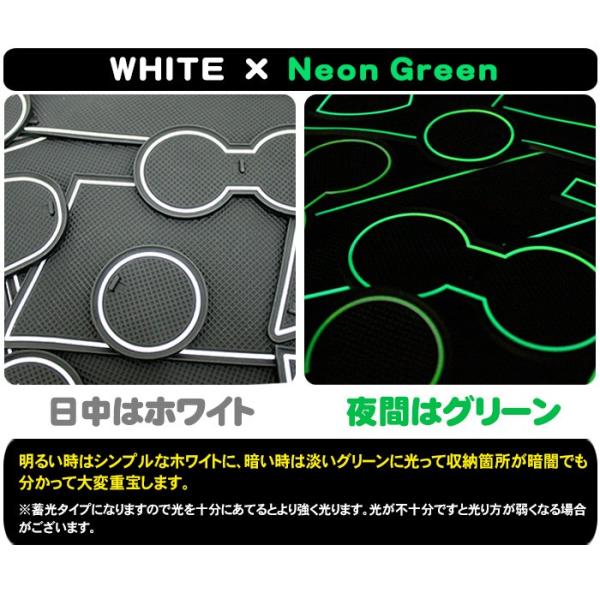 ※夜光色のグリーンは蓄光タイプとなっており、光を十分にあてると光ります。
