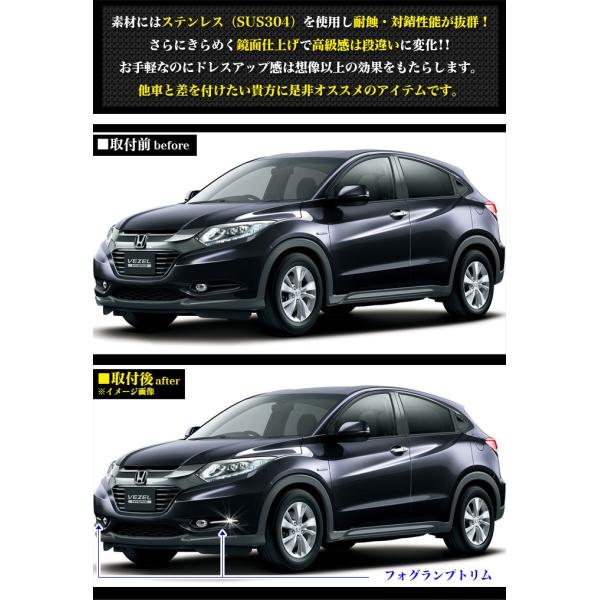 ヴェゼル RU1 RU2 RU3 RU4 フォグランプトリム ステンレス 2P 前期