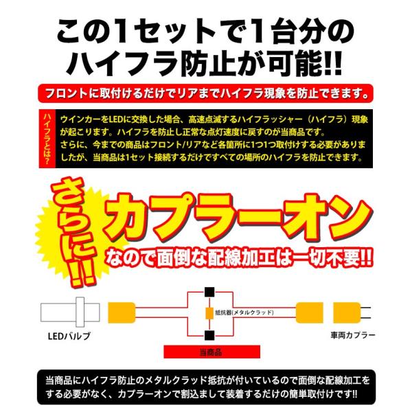 【検索ワード】LED ハイフラッシャー ウインカー プリウス フロント リア テール ランプ ライト ハイフラ 抵抗器 抵抗 リレー LEDバルブ ソケット T20 キャンセラー 球切れ警告灯 対策 bB アクア アルファード VOXY ヴォクシー ハイブリッド クラウン マジェスタ シエンタ NOAH ノア ハイエース ハリアー α マークX X-TRAIL エクストレイル デリカD:5 D5 タント ムーヴ ワゴン R トヨタ レクサス ニッサン 日産 スバル ミツビシ 三菱 ダイハツ スズキ