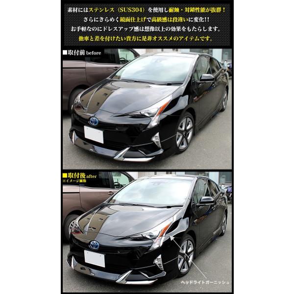 プリウス 50 系 フロントヘッドライトガーニッシュ メッキ ステンレス製 4P