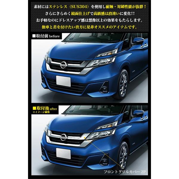 セレナ C27 系 G/X/S 専用 フロントグリルカバー メッキ 2P