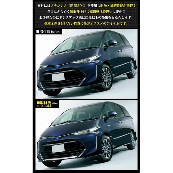 エスティマ 50 系 エスティマハイブリッド 20 系 フロントリップスポイラーガーニッシュ ステンレス製 メッキ 1P